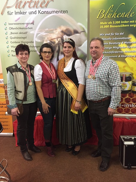 Bild von Rechts Hannes und Astrid, Honigkönigin Jasmin1, Bettina und Alfred bei der Übergabe in Wieselburg