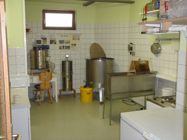 Der Honigschleuderraum, wo der Honig aus der Bienenwabe gewonnen und danach ins Glas abgefüllt wird.